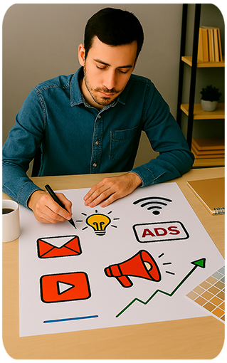 En AIYCP, transformamos ideas en soluciones creativas que conectan con tu marca. Nuestro equipo multidisciplinario se sumerge en la filosofía de cada cliente para construir conceptos sólidos y originales. Ofrecemos servicios publicitarios como branded content, eslóganes, gráfica, videos, naming y copys creativos, además de impresión profesional en rótulos, vehículos, camisetas, regalos publicitarios y más. Pensamos diferente para que tu marca se destaque.